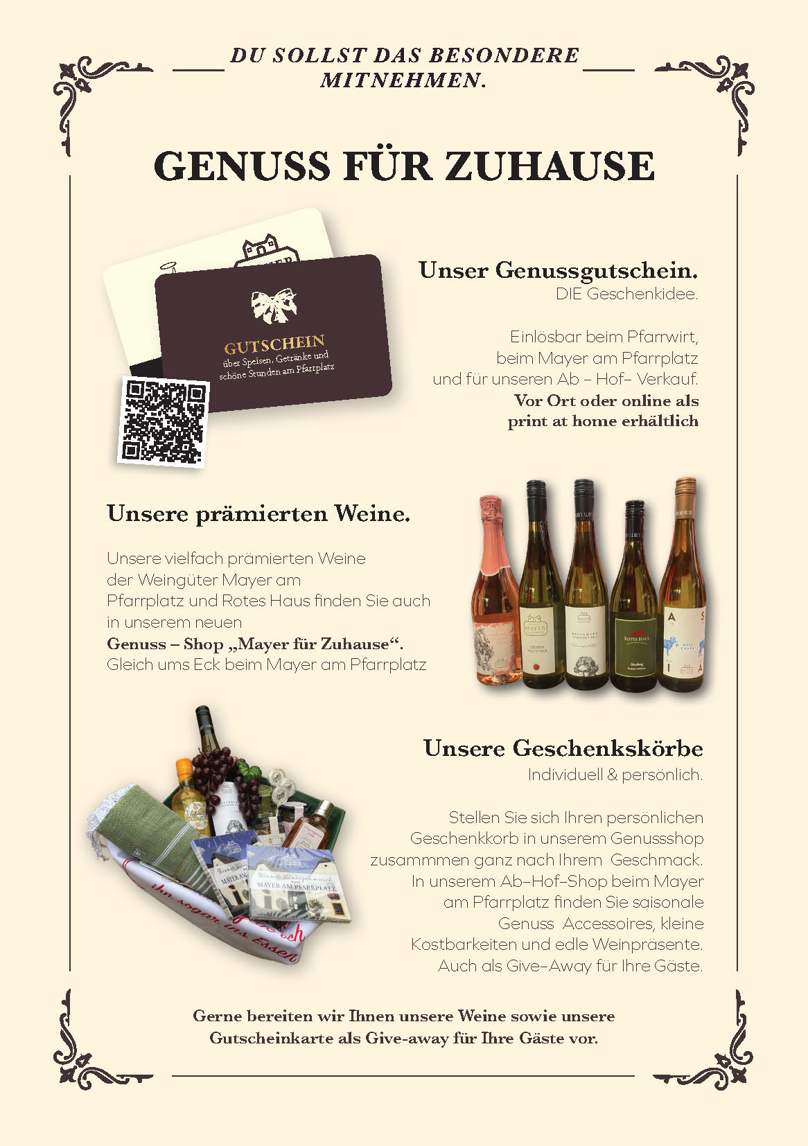 Genuss – Shop „Mayer für Zuhause“.