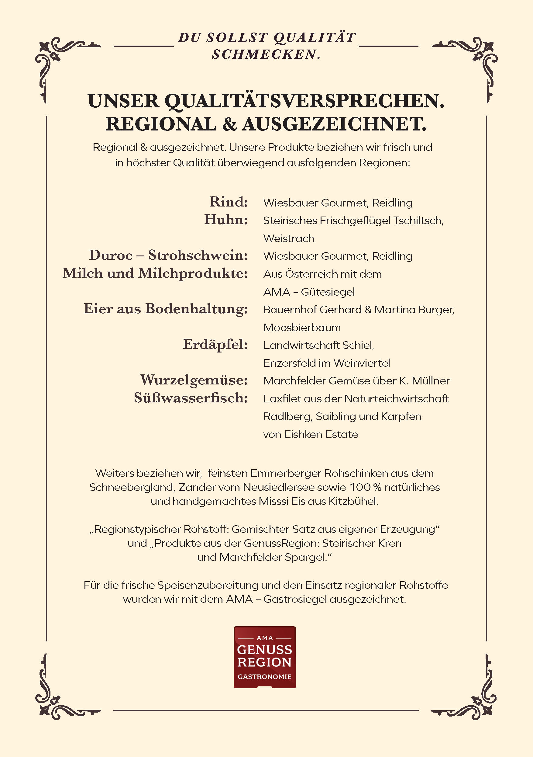 Täglich für Sie geöffnet. Ab – Hof Verkauf und Köstlichkeiten aus unserer Küche zum Mitnehmen.