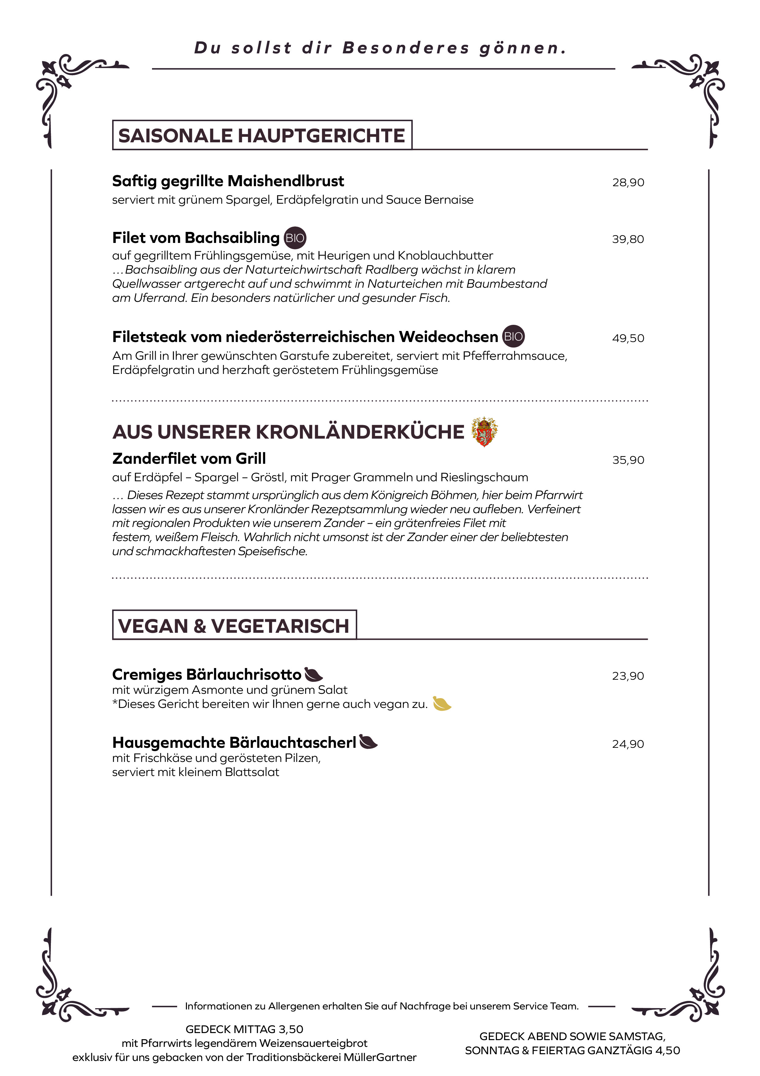 Täglich für Sie geöffnet. Ab – Hof Verkauf und Köstlichkeiten aus unserer Küche zum Mitnehmen.